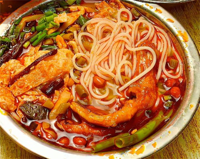 柳城印象螺蛳粉里的米粉配上各种配菜,汤的一种风味食品。柳城印象螺蛳粉主要以圆条线粉为主,用的是干粉,在煮之前需要浸泡。柳州螺蛳粉很大的特点在于其配菜螺蛳肉,用田螺肉或江河中的小螺蛳肉均可,味道都差不多。柳城印象螺蛳粉很好将螺肉夹些猪肉一同绞碎,拌入香料、老抽、味精、少量汤、糖、醋和生粉。吃前先把米粉置滚水中烫一下,捞起,加入上述菜料、靓汤,撒一小撮芜荽。这种螺丝粉既鲜香又有螺味,爱辣者或加点点辣酱,更是爽口提神。