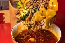 砂锅串串香又叫“热锅串串香”,由传统串串香发展而来,是四川地区汉族传统小吃之一。“成都夜猫子串串香”针对传统串串香存在的局限和不足,都给予菜品创新和提升,使得“成都夜猫子”在产品口味与品种、经营方式、技术标准等各方面都具有了传统麻辣烫无法比拟的优势,不仅麻辣鲜香、回味无穷,而且具有防病治病、养生健脾的滋补功效。