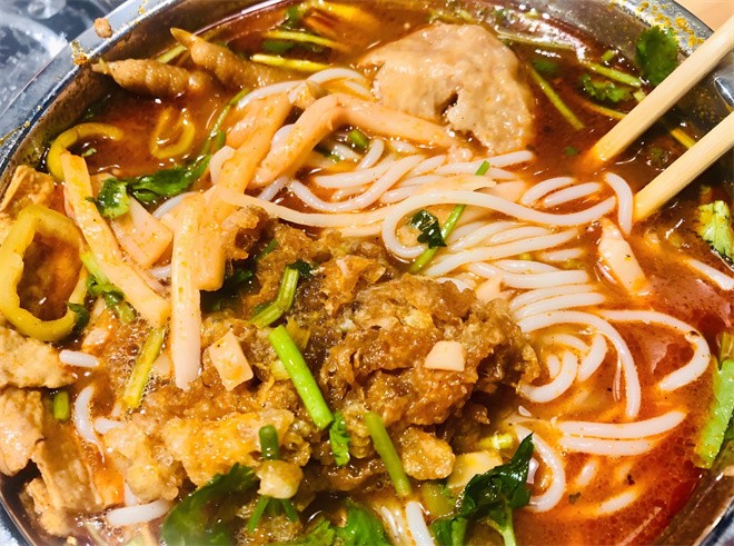 柳州螺蛳粉具有“酸、辣、鲜、爽、烫”的独特风味,由柳州特有的软滑爽口的米粉,加上酸笋、木耳、花生米、油炸腐竹、萝卜干、黄花菜、鲜嫩青菜等配料及浓郁适度的酸辣味和煮烂螺蛳的汤水调合而成。螺蛳粉的味美是因为它有着独特的汤料。螺蛳汤是以柳州青螺为原料,加上猪筒骨再配以当地汤草果、茴香、陈皮、桂皮、丁香、胡椒、香叶、甘草、沙姜、八角几十种名贵中药材熬制成汤,每一个做螺蛳粉生意的人都会在汤上下功夫。在柳州,一碗汤淡而无味的螺蛳粉是不会有人吃的。精心熬制的螺蛳汤具有清而不淡、麻而不燥、辣而不火、香而不腻的独特风味。