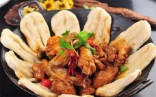 苏北地锅鸡鸡肉在美味汤汁中炖煮,肉质鲜嫩,菜蔬包裹着汤汁及鸡肉鲜味,苏北地锅鸡,口感美味,老少皆宜,不仅有麻辣鲜香,还有酱香与清汤滋补口味,百味百吃,鲜美可口,深受各地消费者喜爱。吃鸡有李苏北地锅鸡饼借菜味,菜借饼香,被热气很熟的玉米面儿贴饼子浸透了鸡肉香味,软软的很有嚼劲儿,比这鸡还让人上瘾啊!尾部沾汤汁,中间放上浸满鸡油的油豆腐、娃娃菜,再放上两块香嫩有嚼劲的鸡肉,卷成煎饼状,一口咬下,那香味,简直了!再淋点汁浇在米饭上,简直就是人间美味。