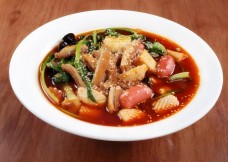 经典红油味,辣而不燥。这款经典红油味与干拌麻辣味可谓一汤同源——秘制原汤底料。汤底熬制选用三十余味中药材和香料,全面吸收了植物内在的自然芬芳,再配合猪棒骨、牛骨文火熬制数小时,极力汲取动物骨髓中的朴素鲜味,食材经过层层浸润,汤底精华全然浓缩在其中。然而,精华的味道总要以一种更惊艳的方式散发出来——秘制红油。诱人的红油将食物中所蕴含的汤底精华层层裹住,一口咬下去药草香、猪骨香以及爽辣感伴随着细腻的红油直逼口腔,惊艳了你整个吃货生涯。