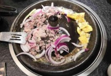 它是把牛肉或羊肉切成方块,用葱花、盐、鼓汁一些酱汁腌制,在以前人是把牛肉,羊肉用牛粪烤熟再食用,随着时代的不断变化进步,发展,现如今的烤肉技术以跟以前完全不同了。不在像以前的那样的做法。现在的烤肉店,是事先先把牛肉、羊肉切成块,然后在把牛肉、羊肉用料酒、葱花、姜汁、盐腌制一段时间,然后在上餐给消费者烧烤。消费者在把腌制好的肉块放入铁炉上,把烤好的肉在蘸着酱汁配料食用。