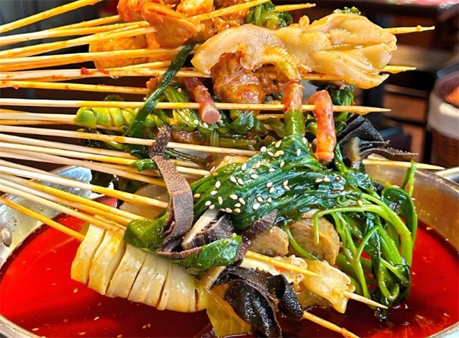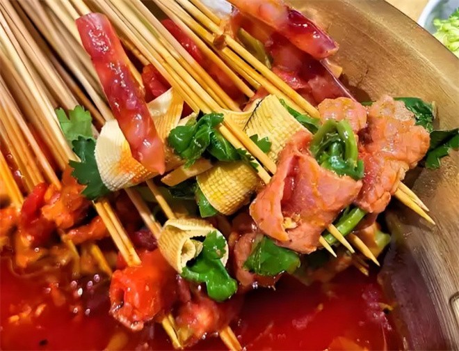 大有签坤串串香火锅坚持使用一次性麻辣清香的牛油锅底,够地道!大有签坤有14种特色必点串,重点推荐秘制红味白味牛肉,剩下12种特色需要吃货们亲自品尝!