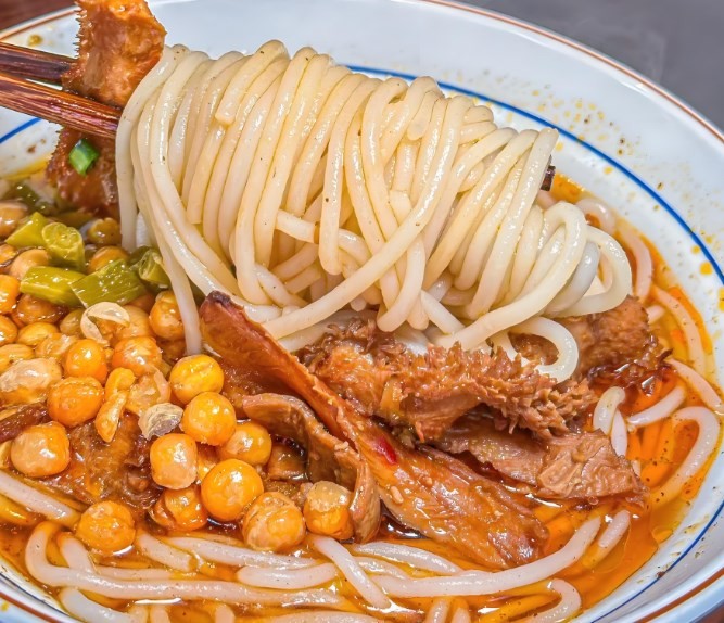 新疆炒米粉中的炒米粉是其特色的关键之一。炒米粉是一种以大米为原料制作而成的细长条状米粉,色泽白净,口感柔韧有弹性。与其它地区的米粉相比,新疆炒米粉的炒米粉更加细薄,口感更加爽滑。此外,新疆炒米粉所使用的酱料也是其特色的关键之一。这种酱料由多种香料和辣椒熬制而成,色泽红亮,味道香辣浓郁,为整道菜品增添了独特的味道。新疆炒米粉作为大众消费快餐,迎合了南来北往食客的口味,经融合创新后独树一帜,形成了微微辣、微辣、中辣、爆辣、魔鬼辣的味型特色,满足了不同消费群体的需求。“辣”味不仅能让人越吃越上瘾,有较强记忆点,促进了新疆炒米粉的跨地域普及。