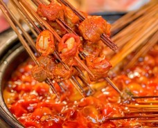 研发团队为了让消费者轻松享受地道的四川火锅,坐落于河北保定的研发中心多次探访名师,延袭古老手工炒料工艺匠心秘制,精选石柱红和汉源花椒等原产地食材,配合百余种香料精华精心配制,飞外天串串香打造出四川串串的口味。