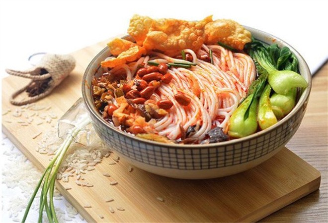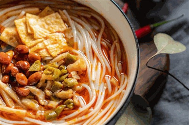 由于北方士兵水土不服,粮食供应困难,军中伙夫根据北方合咯面的制作方法,南先将上好的大米磨成浆,装袋虑干,擀成粉团煮熟后压榨成圆根状,缔造了今天誉满天下的“桂林米粉”。为了改善北方士兵不服南方水土气候出现的疾病,当地瑶族人将几十种草药、香料配方熬成浓浓的汁,给每个士兵米粉碗里添上一小勺,既好吃又能治病,这就是卤汁最早的雏形。后经历代卖米粉师傅的改进、加工,而成为风味独具的桂林米粉卤水。桂林米粉加上独门配方的卤水很快变成了军中流行的“快餐”。
