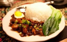 盖世一番卤肉饭的特色在于肉酱和肉汁,制作的关键部分。卤肉饭在台南、台中、台北的制作方法和特点均有差异。台湾的饭食小吃花样繁多,不过要说其中着名的,当推卤肉饭。