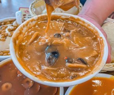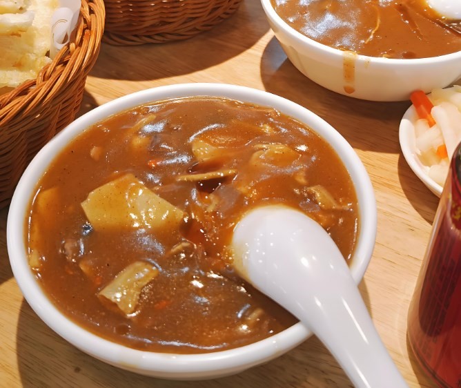 河南逍遥镇胡辣汤是中华风味名吃之一,它是以少林寺“醒酒汤”和武当山“消食茶”二方为基础,做出的一种色香味俱佳的汤。该汤既消减了茶之苦味,又去掉了汤之辣味,且能醒酒提神,开胃健脾。