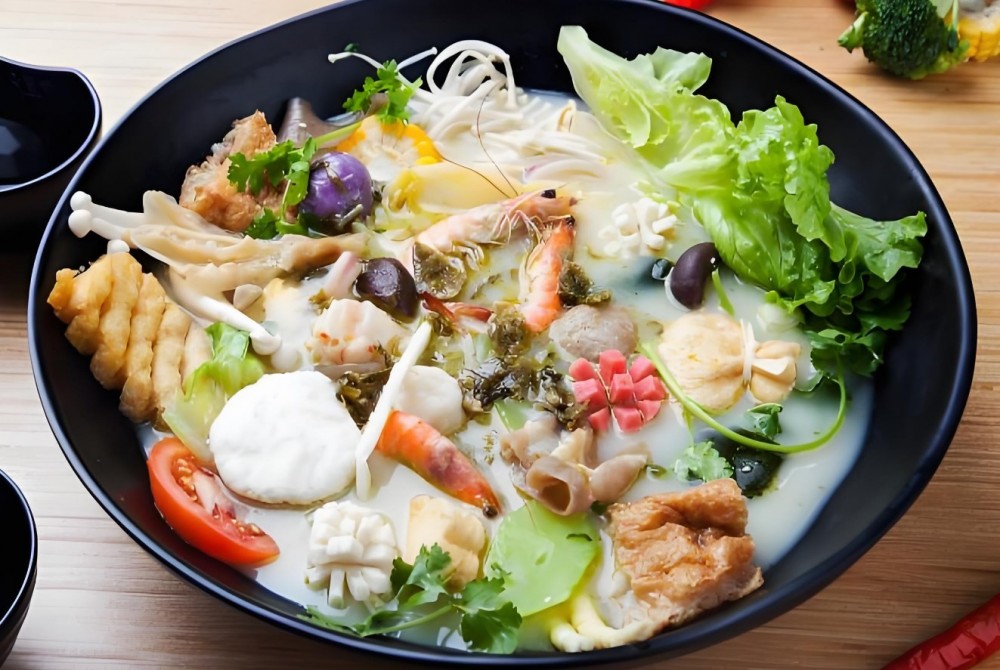 功夫猪骨汤麻辣烫选料丰富,鱼、海鲜、藻类、蘑菇、黄鳝、牛、羊、泥鳅、猪肉、蔬菜、豆制品、海带等,荤素俱全,方可都入锅烫涮。客户可以根据烫菜的选择合适的底汤烫涮,这样涮出来的口感更美味、更丰富,而且底汤也可以喝,不仅营养丰富而且美味可口。