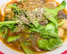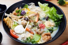 功夫煮骨汤麻辣烫以麻、辣、鲜、香混一锅为特点。一大锅菜一起用各种调料味料烫起来吃,加入肉、海鲜、脆肠、肉嫩,笋片清香,可以吸收各种肉类、海鲜的鲜味,加入本身的香味,混合起来,成就了“一锅香”。内容混搭有荤、有素、有淡、有辣、有自然形成、也有人工加工……看上去已觉天南地北的食材,功夫煮骨汤麻辣烫融入一锅,就如时尚界将五彩六色混搭在一起一样,享受的是丰富与多样。