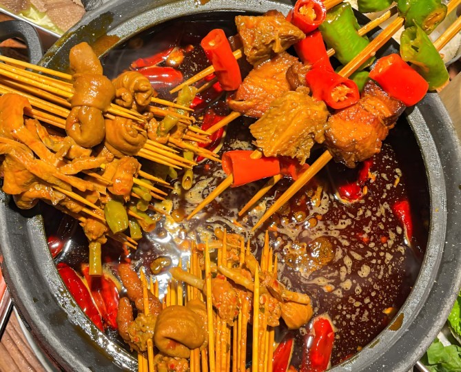 憨三砂锅串串的习惯在于它的锅。憨三砂锅串串,陶瓷窑炉之一,依山势倾斜砌筑,形状似龙而得名。生活中感受不到的人间温暖,全都由这种砂锅均衡而持久的传递给锅里的食材,较大限度的保持蔬菜与肉肉的水分。