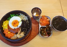 石锅拌饭为韩国的代表性食物,拌饭里蕴涵着“五行五脏五色”的原理,在石锅锅内放入米饭及菜肴,再烤到锅底有一层锅巴,喷香诱人,以其异国餐饮风味,别样的烹制方法,多样化的营养成分,赢得了投资者的一片好评。