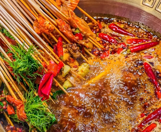 何家香串串香起源于观音故里—-遂宁,以其风味浓郁、菜品丰富、服务优质,价廉消费而深受大众青睐。何家香串串香始终倡导提供绿色健康的食材、周到优质的服务、干净卫生的用餐环境。