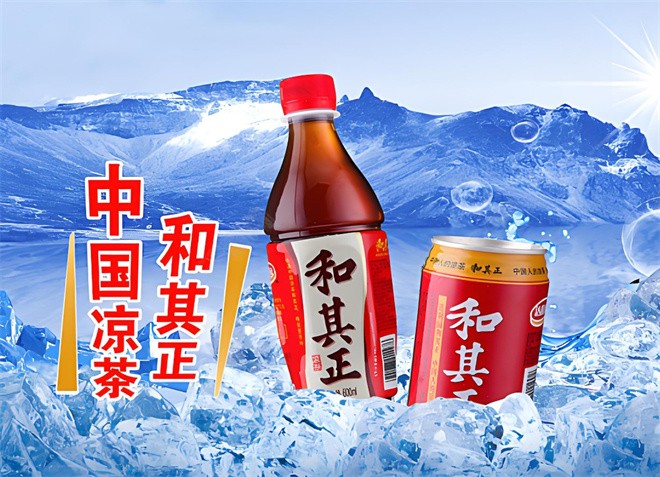 和其正凉茶根据民间传统配方,精选草本植物材料,采用现代科学方法精制而成,清火气、养元气、老少皆宜。是中国凉茶行业的一支劲旅,一匹“黑马”,正与“王老吉”雄霸凉茶市场且并行天下,大有“带头大哥”之风。象征着凉茶文化,具有丰富的品牌内涵,现发展成铁罐和PET瓶装两种瓶型。2007年轰动全国的“和其正”凉茶,在取得了不俗的市场成绩后,又推出了PET装!