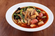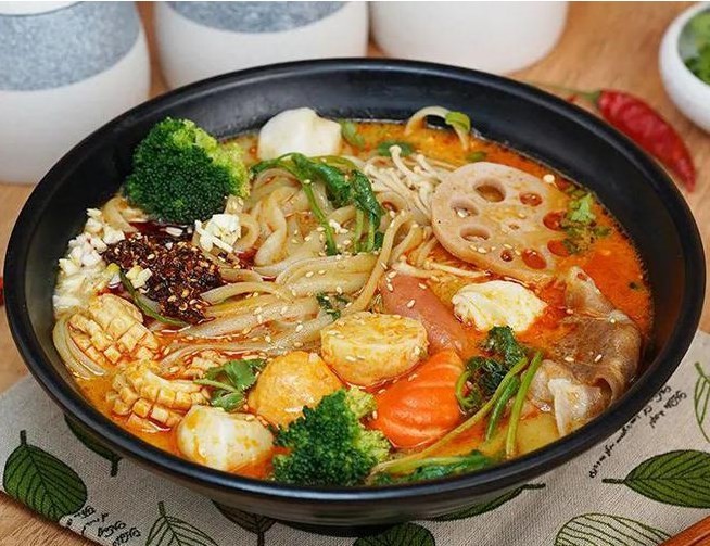 吉阿福麻辣烫以用料考究、配方科学、制作精细、风味独特、操作快捷、菜品卫生、烫料营养等特点给独具慧眼的人们提供了更多赚钱的机会。一个没有餐饮经验的人在总部的指导下,不需要聘请厨师,就可以经营餐饮。吉阿福麻辣烫不仅在生产工艺上进行了大刀阔斧的改革,同时在原料的采购上也进行了精选。甄选上等猪骨、牛骨经过高温烧制而成,绝无任何添加剂。多种风味全国通吃!
