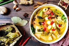 椒娘冒菜秉着打造健康、营养、鲜味的川渝美食的理念,一方面强调品质升级,在熬制高汤时加入多种海鲜、蘑菇等食材,将汤底升级为更鲜的海鲜大骨高汤,以保证冒出来的菜品味道更鲜美。
