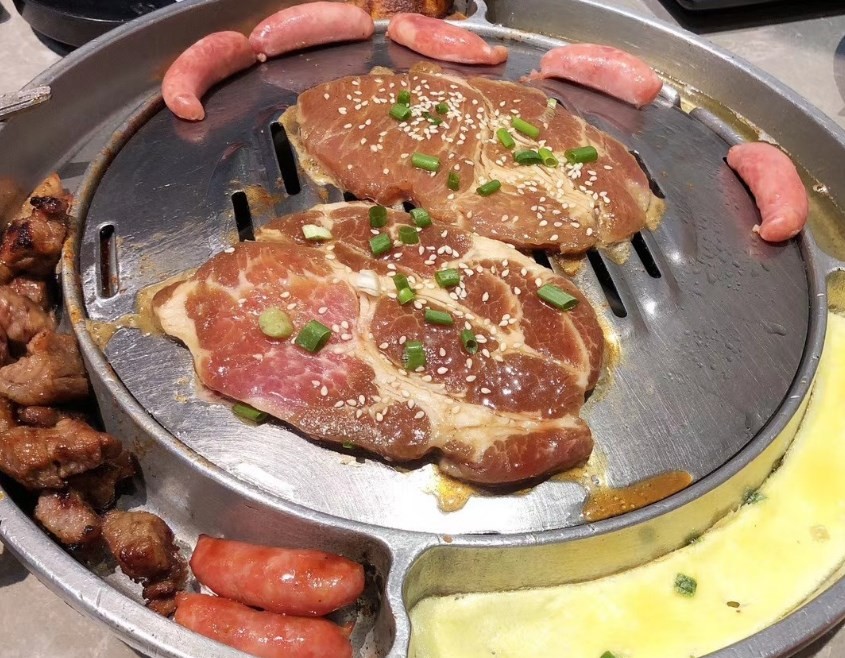 集牧自助烤肉的厚切猪五花,肥瘦相间的猪五花,肉质特别厚实,在烤盘上烤得滋滋流油,入口很有嚼劲,用生菜包着吃更巴适。厚切猪五花肥瘦均匀,烤得焦香四溢,生菜包着黄金比例的五花肉,鲜美多汁,让人大呼过瘾!水果飘香牛肉粒方方正正的牛肉粒看上去就很有食欲,提前码味腌制,烤制的外焦里嫩,吃到嘴里满满的水果香气。黑椒牛排丰富的油脂纹理,炭烤后香味更浓,烤到五分熟,牛肉嫩滑多汁,层次感十足!土耳其烤鸡,能吃到正宗的土耳其烤鸡,表皮酥脆,肉质细嫩,火候掌握得刚刚好。烤鸡肉嫩多汁,蘸上酱料更加美味。谷饲上脑牛肉肥瘦均匀,吃起来很鲜嫩,肉质入口鲜嫩弹牙。