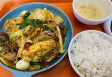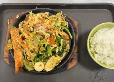 金日升烤盘饭顾客可以根据自己的喜好选择不同的口味,包括烧烤、香辣、鱼香和糖醋。烤盘饭的灵魂在于调料,金日升的秘制调料真的是一绝!咸香适中,带一点微辣,菜品炒制入味,拌着米饭吃超级下饭!