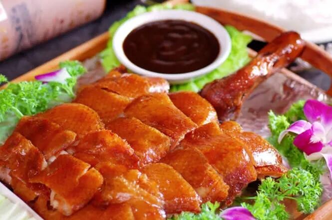京鸭记北京烤鸭历史悠久,蜚声中外。它是采用挂炉明火烧的方法烤制而成,其皮脂酥脆,肉质鲜嫩,飘逸着清香,鸭体形态丰盈饱满,全身呈均匀的枣红色,油光滑泽,赏心悦目。