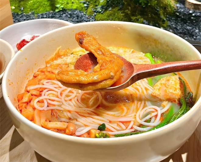 锦源手作螺蛳粉所用食油均从正规厂家定点采购,纯净的动物油与调和油配合使用。螺蛳粉的汤是猪筒骨加特制小炒螺与几十种草本香料(保密配方)经几小时慢火精心熬制,确保汤味恒正不变,口不干有回甘。锦源手作螺蛳粉犹如色香味俱全的艺术品,红通通的是精制辣椒油,绿油油的是时令鲜蔬,鲜美的螺蛳汤渗入每一根粉条,令人闻之开胃,想之流涎,食之难忘。