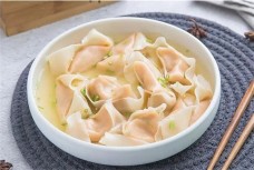 体:金正川馄饨,身形虽小却晶莹剔透,独具特色的燕尾馄饨形状。