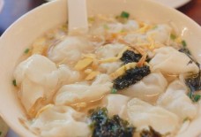 聚鑫阁馄饨的肉馅剁得细腻的前腿肉几乎不见肥肉,加入了姜末提鲜去腥后,反复搅拌均匀直至猪肉纤维完全吸收水份,入口细腻而不松散,肉质鲜嫩富有弹性,细细咀嚼下肉的鲜香更从齿间溢出。而将这馄饨味道发挥自然是那馄饨汤底,用筒子骨做底,加上料包,每天从凌晨四点开始熬制,熬上一天便成就了这锅清香鲜美的汤底。