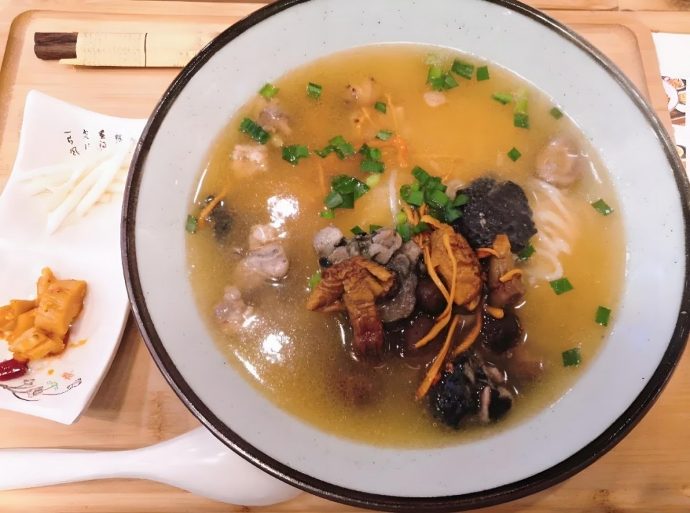 口口妙鸡汤饭用原味鸡汤熬上整整3个小时,金黄的鸡汤汤汁香浓咸鲜。在这个瑟瑟发抖的秋冬,盈盈一勺入口。最质朴又最满足的滋味在唇舌间回荡。从味蕾到肚腹,润养又舒服。口口妙鸡汤饭家用的鸡和饲料鸡的口感完全不同,土鸡皮金黄薄脆,鸡肉劲道不柴,带着土鸡特有的肉香气,配上鲜美鸡汤和秘制的辣椒酱,清爽不腻,几乎每个客人都是直接端碗干完一整碗粉和汤。