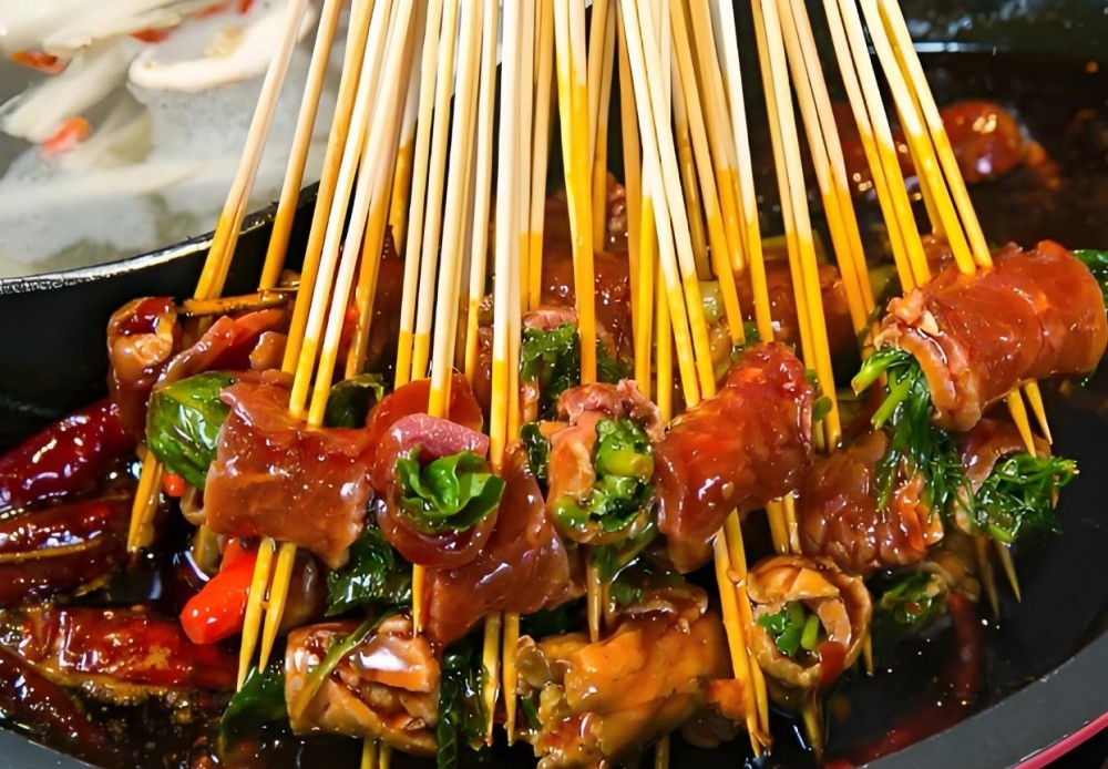 相比传统火锅,这个独具四川风味的串串火锅真的很有创新,而且是什么食材都能够串,不添加色素,绿色健康的美食。随着川味的走红,串串香(麻辣烫)这个盛行于川渝街头的草根美食也跟着川人走遍了大江南北,几乎“有人的地方,就有串串香”。