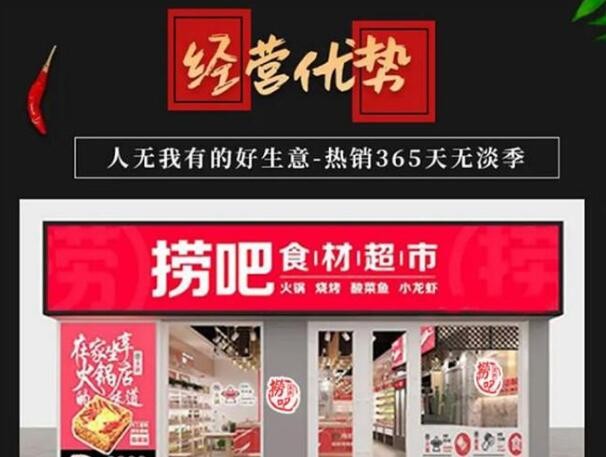 捞吧火锅食材超市,为满足人们在家中吃火锅的愿望,通过火锅食材以及烧烤食材满足大众。随着不断的发展,捞吧火锅食材超市影响力和竞争力也得以提升,招商连锁之路更因此火爆。