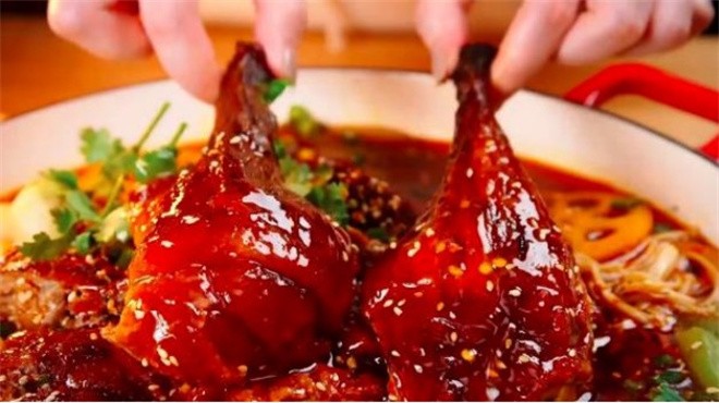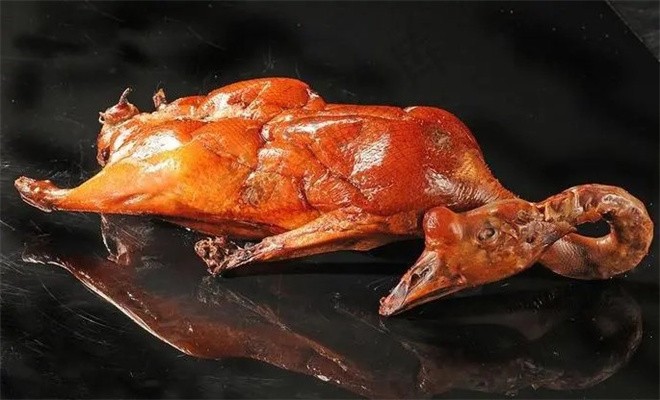 烤鸭(佬满丰烤鸭)历史悠久,早在南北朝的《食珍录》中已记有“炙鸭”。元朝天历年间的御医忽思慧所著《饮膳正要》中有“烧鸭子”的记载,烧鸭子就是“叉烧鸭”,是很早的一种烤鸭。而“烤鸭”则始于明朝。朱元璋建都于南京后,明宫御厨为了添加鸭菜的风味,选用炭火烘烤,使鸭子吃口酥香,肥而不腻,遭到人们称誉,即被皇宫取名为“烤鸭”。佬满丰烤鸭肉质细腻,口感杰出,养分丰厚,含有很多的不饱合脂肪酸,在人体内不积储,人体吸收后能软化心脑血管。鸭的表皮中含有很多的胶原蛋白,是美容佳品。