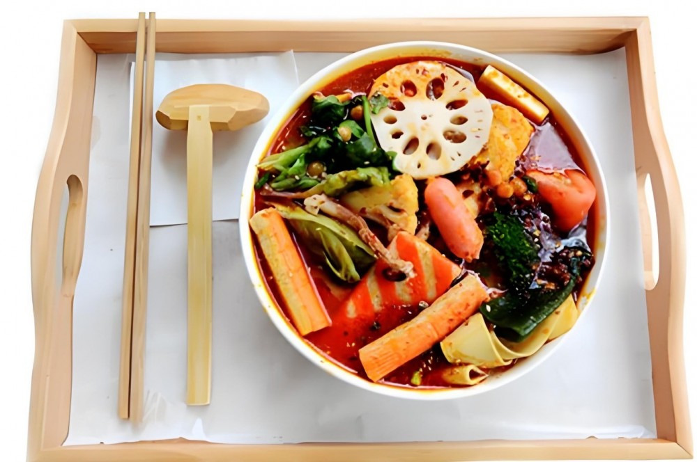 一碗健康的麻辣烫,从汤汁开始,对营养和健康就必须要有严格的要求,辣千骨讲究如何通过食材本身的鲜度,加上鲜美的汤汁,让口感自然醇厚!配合多种绿叶蔬菜、豆制品原料、海带等藻类、蘑菇等菌类、薯类、鱼类、蛋类等植物性原料品种占优势,新鲜蔬菜和肉丸、肠片、蛋类等。将这些进行合理搭配,它比一般的快餐菜肴更容易达到酸碱平衡的要求,也符合食物多样化的原则。凡是菜市上有的菜都可以成为辣千骨麻辣烫的原材料。