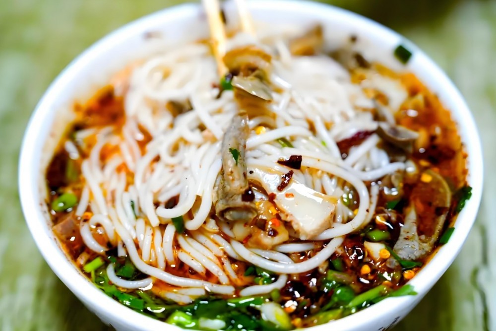 禄广门贵州原汤牛肉粉酸辣适中,可根据个人口味选择添加贵州特有的香炒辣椒面,那种酸辣的味道瞬间点燃味蕾,仿佛能感受到辣椒的热烈和酸菜的清爽在口中交织,形成一种独特的味觉盛宴。