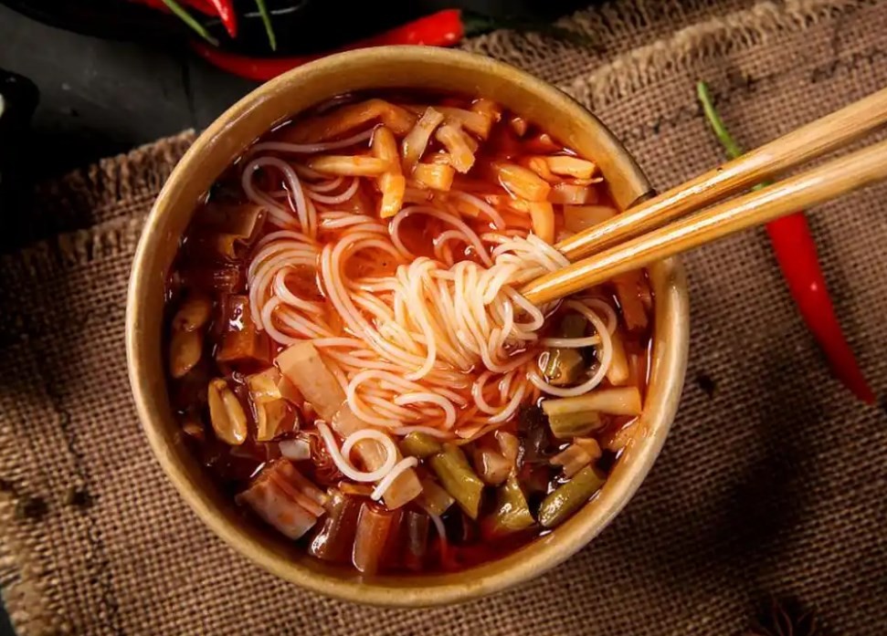 螺奶奶螺蛳粉是用新鲜石螺为原料,加上猪筒骨,再配以当地草果、茴香、八角、陈皮、桂皮、丁香、胡椒、香叶、甘草等二十多味香料熬制成汤,精心熬制的螺蛳髙汤具有补而不燥、香辣酸爽的独特风味,成为当地名吃之冠。