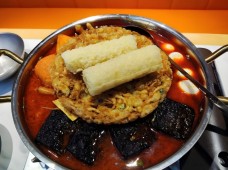 螺膳煌柳州螺蛳粉主要以圆条线粉为主,用的是干粉,在煮之前需要浸泡。螺膳煌柳州螺蛳粉的特点在于其配菜螺蛳肉,用田螺肉或江河中的小螺蛳肉均可,味道都差不多。将螺肉夹些猪肉一同绞碎,拌入香料、老抽、味精、少量汤、糖、醋和生粉。吃前先把米粉置滚水中烫一下,