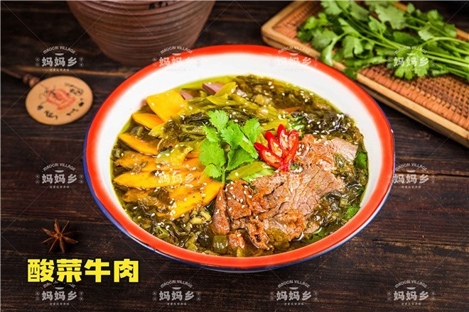 妈妈乡冒菜,顾名思义就是将各种菜品在鲜香的底汤里冒一下,再伴上各种调料吃的一种菜的形式。妈妈乡冒菜红汤辣而不燥,醇厚飘香;白汤香味浓厚、回味绵长;菌汤菌味迷人,清新爽口;酸汤酸辣开胃,口齿生津。妈妈乡冒菜选料丰富,营养全面,新鲜肉类、禽类、水产品、时令蔬菜、干鲜菌果等均可入锅,一夹一冒,便可食用,食品营养成分不流失。既能吃上鲜嫩可口的食品,又能喝上营养丰富的底汤,真正是更美味、更营养、更健康。