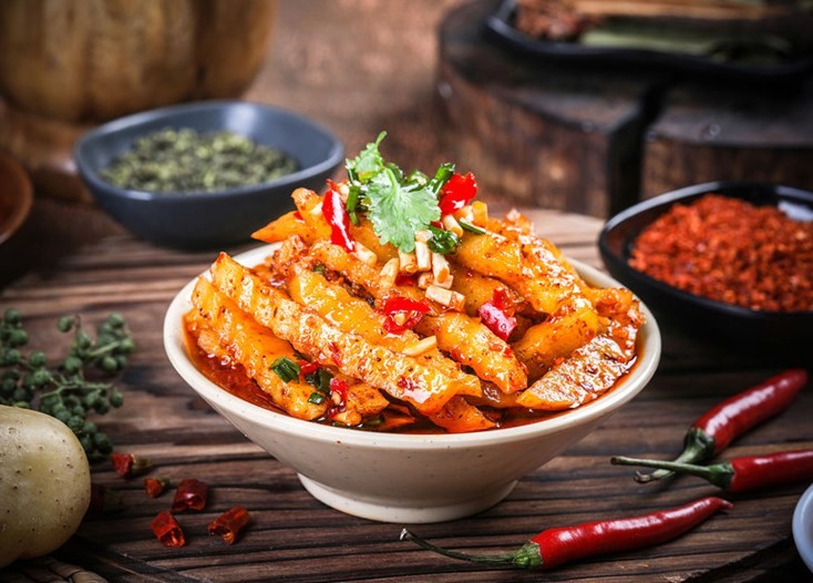冒舍冒菜原材料走访多地进行筛选,辣椒是冒舍冒菜灵魂,选择辣椒皮薄肉厚、辣椒味浓,炒制时,香飘五里不在话下,特点是虽辣但不呛口,辣得温和舒适。冒舍冒菜利用传统工艺将辣椒与多种香料食材共同熬制,制成润辣的底料。