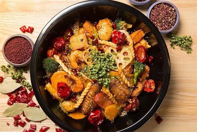 缙云山土家风味:麻辣香锅缘自于重庆缙云山土家风味,是当地老百姓的家常做法采用优质原料,精心配制,其原料上乘,配方独特,继承了传统火锅、川式火锅、香辣菜的基础上,把麻、辣、鲜、香混一锅融为一体,而且具有辣而不燥,鲜而不腻,麻味绵长,香气扑鼻的特点!据说,当地人平时喜欢把一大锅菜一起用各种调味料炒来吃,而每当有重要的客人时,便会在平常吃的大锅炒菜中加入肉、海鲜等贵重的食物,用此来招待客人。