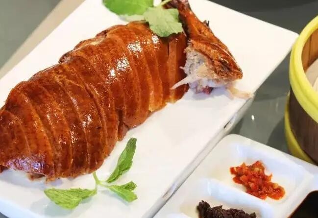 明城五号烤鸭坊历史悠久,蜚声中外。它是采用挂炉明火烧的方法烤制而成,其皮脂酥脆,肉质鲜嫩,飘逸着清香,鸭体形态丰盈饱满,全身呈均匀的枣红色,油光滑泽,赏心悦目。