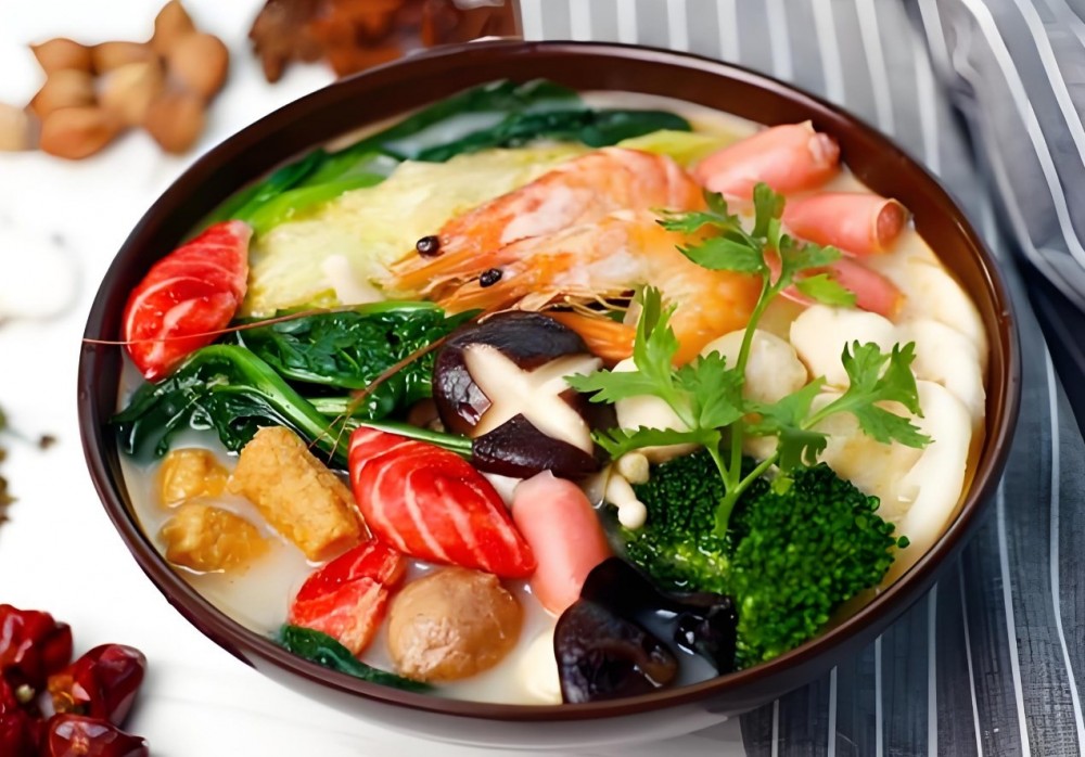 明祥麻辣烫将传统的火锅锅底精简提纯,保留了传统火锅麻辣烫的麻、辣、鲜、香等特点,在配以上百种菜品,包括绿叶蔬菜,各种豆制品,海带等藻类、蘑菇菌类、薯类、鱼类、蛋类。