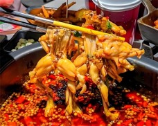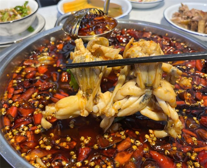迷踪蛙四川火锅在锅里沸腾翻滚后,红润的汤汁顺着线条缓缓流下,那诱人的香味简直犯规!送入口中细细咀嚼,蛙肉肉质细嫩可口,且肉质吸满了锅底的精华,鲜香麻辣一应俱全,让你直呼过瘾!