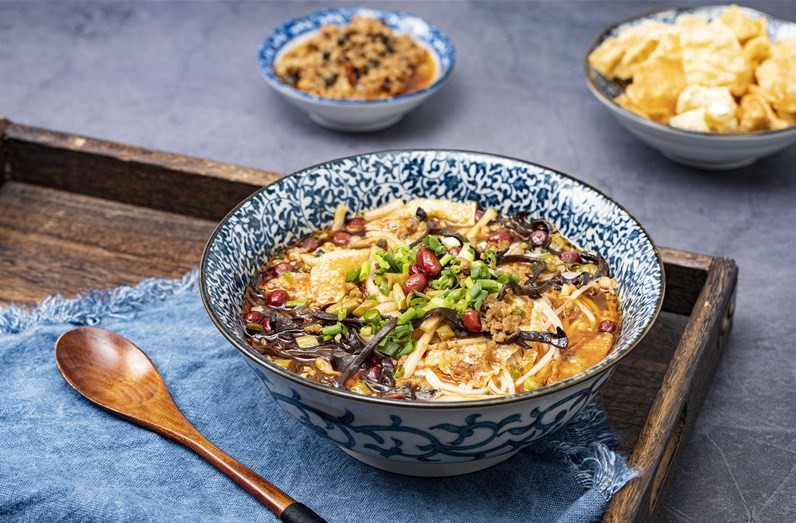 大米制粉更劲道,现炒浇头更好吃,匠心传承若干年。高汤以草果、茴香、花椒、陈皮、槟榔、桂皮、丁香、桂枝等多种名草药和香料料方加纯猪骨,吸引了众多的客户。那七爷米粉0添加、0杂质、安心健康,无论炖、炒、拌、煮,都能碰撞出令人惊喜的美味。米粉没煮之前是微微的黄色,煮熟之后用洁白如玉来形容差不多。吃一口则感觉口感不同于其它米粉那般软糯,而是柔软中带着Q弹,爽滑中带着韧劲。那七爷米粉以飘香麻辣、鲜香微酸、奇香诱人的独特风味迅速风靡全国,成为风味快餐的口碑品牌、米粉餐饮的口碑品牌。