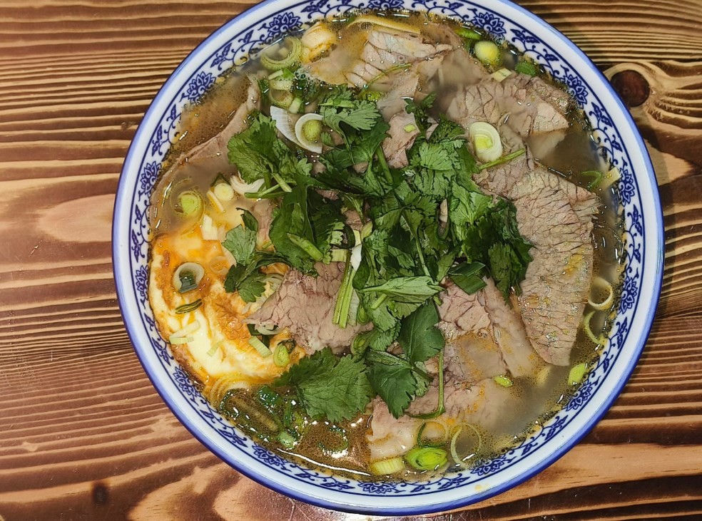 牛大碗兰州牛肉面家的牛肉纹理清晰,肉质紧致,炖煮得耙软入味,一点都不塞牙,很便于嚼碎。半筋半肉里面的牛肉筋块儿大饱满,吃起来却不费力,甚至入口轻轻嚼几下就化在嘴里。怪不得店里经常有老人和小孩过来吃。