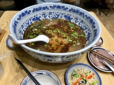 牛大碗兰州牛肉面家的牛肉面可以选择半筋半肉或者全肉,牛肉在碗里铺得满满的。豆排是豆腐泡质感的豆制品,软烂有嚼劲。在牛肉汤里多泡一会,豆腐香和肉香结合,味道更加香浓,口口爆汁。