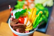 牛妹子牛排杯上层是荤素搭配合理,美味营养的牛排,下层是各种各样可供选择的饮品,牛妹子牛排杯的新吃法让人们可以同时享用多重美味,追求天然品质,拒绝油烟污染,是产品的一大特色。食材来自于天然牧场,精心挑选,不仅口感美味鲜嫩,而且营养低脂,安全健康,深受消费者的青睐与支持。