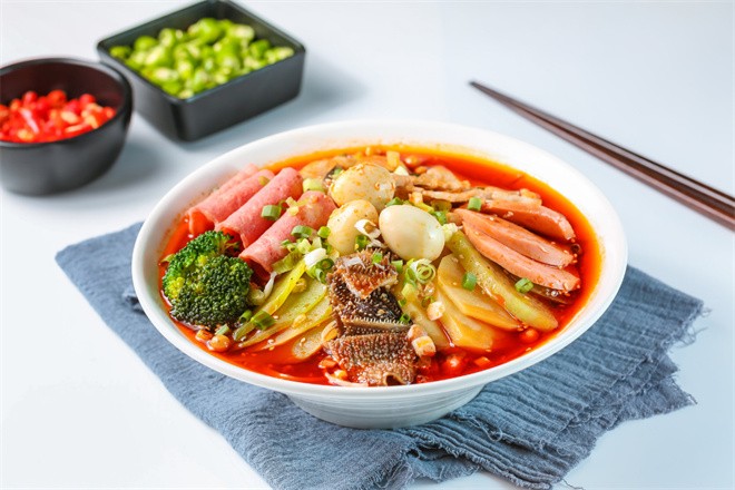 品蜀国冒菜的味道总是能够出其不意的吸引着路人,麻辣鲜香、汤汁红亮、回味醇厚。将优质香料与数十种滋补降噪、健脾健胃的中草药秘制融汇,历经文火炒制、热油浸透、大骨鲜汤熬煮、旺火烫制。