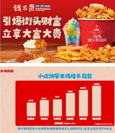 钱三贵深耕中韩传统小吃品类,主打鸡柳、火鸡面、锅巴土豆三大爆品+雪泥冰沙/山药片强力引流,引爆街头财富。
