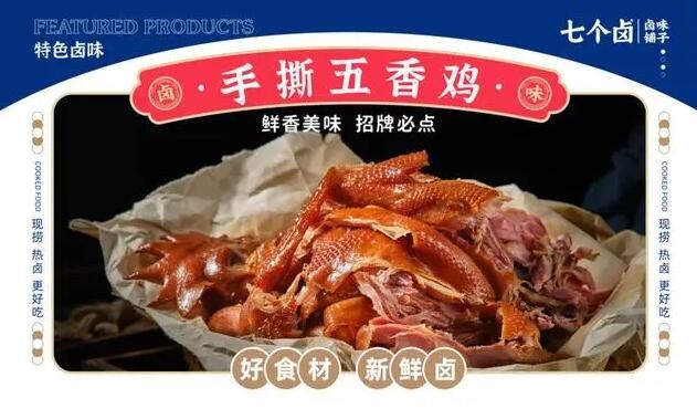 徐州七个卤餐饮管理有限公司旗下七个卤的卤味,可以说是“色、香、味、型”俱全,通过香料焖煮而成,有麻辣、香辣等多种口味,无论是鸭脖、猪蹄、凤爪、还是手撕鸡,都能激活消费者的味蕾,吃了就停不下来,复购率非常高。
