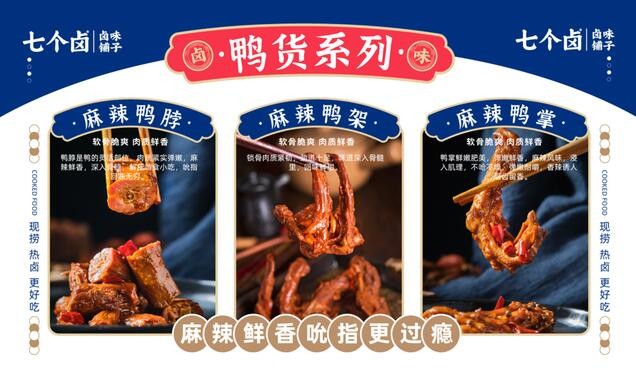 在中国,卤味的发展已有千余年历史,消费基础广泛。而且,卤味赛道从不乏竞争,从早期的鸭脖之争,鸡鸭之争,冷卤与热卤之争,都是该品类一次次的底层革命。作为卤味赛道的新晋品牌,七个卤一开始就抓住了核心卖点,从而引领行业。