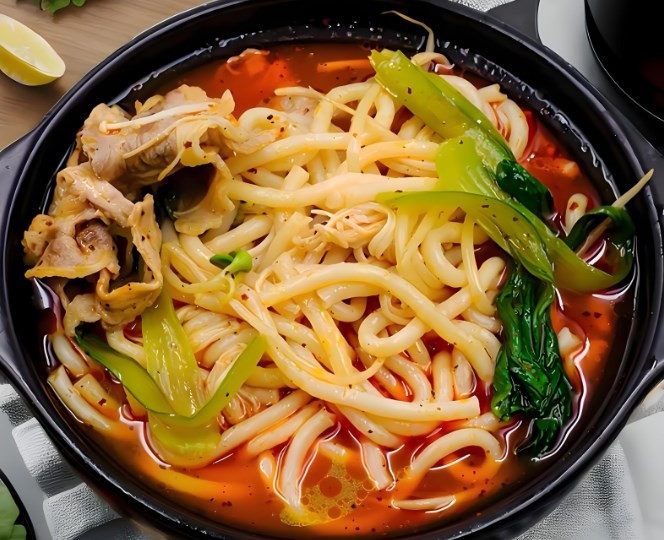 先熬好汤,然后将各种料配好,加入面和菜,放入锅内就可煮,大约3-5分钟即可食用。另外还可以打生包,带回家也可以自己煮。