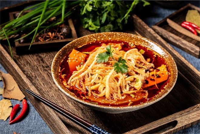 尚川冒菜以辣味出挑,汤料以数十种名贵香料和畜禽精华为原料,辅以川内上等调味品,经现代工艺精心制作而成,逐渐形成了“麻不刺喉、辣不上火、温和中性、口感醇厚”老少皆宜的地道川派美食。